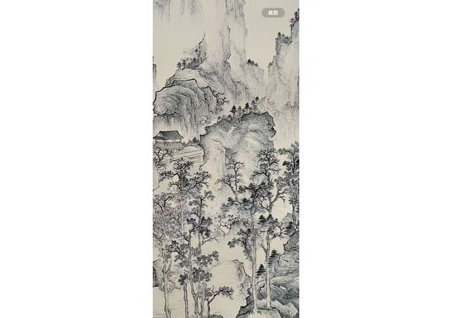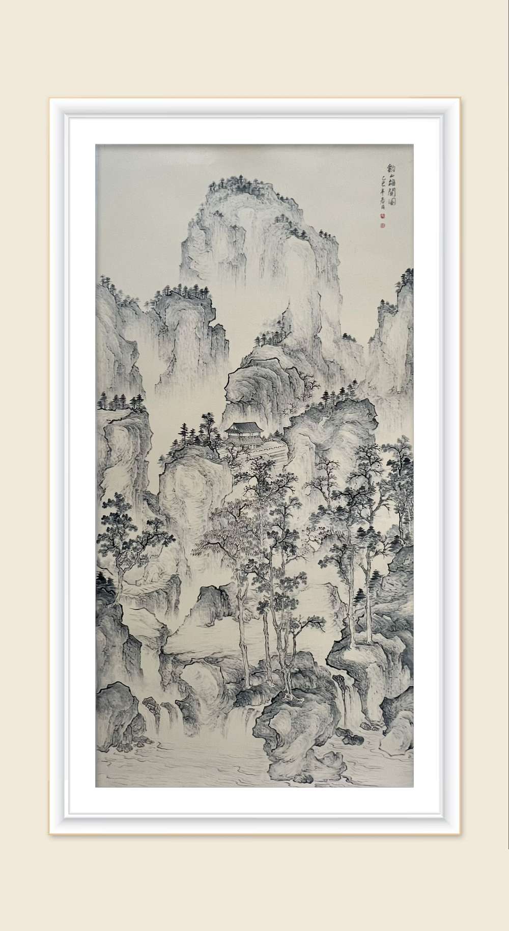 其作品主攻山水,气象远接五代宋元,兼写实写意一体,熔南北于一炉,既有文人画之幽闲旷逸,亦有画家画之工致清新,近年来也兼工人物,所绘佛道,高人隐士,既传承古人,又独出机纾,颇有逸趣。