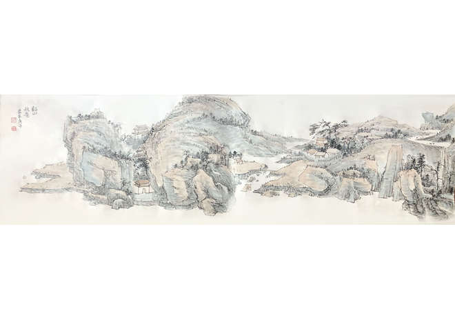 其作品主攻山水,气象远接五代宋元,兼写实写意一体,熔南北于一炉,既有文人画之幽闲旷逸,亦有画家画之工致清新,近年来也兼工人物,所绘佛道,高人隐士,既传承古人,又独出机纾,颇有逸趣。