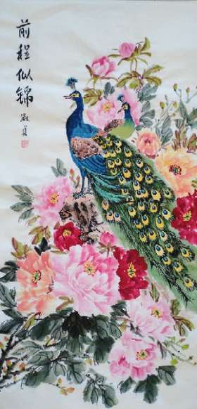 梦绘 四条屏《梅鹤同春》《天香花开》《福禄吉祥》《浓艳秋光》