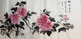 艺术家自销 亓夏红 没骨牡丹与青花瓷
