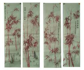 范彩君 山东德州美协会员,红竹祈福四条屏