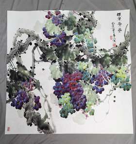 中国美术名家协会会员 卢军权 梦山六尺斗方重彩葡萄