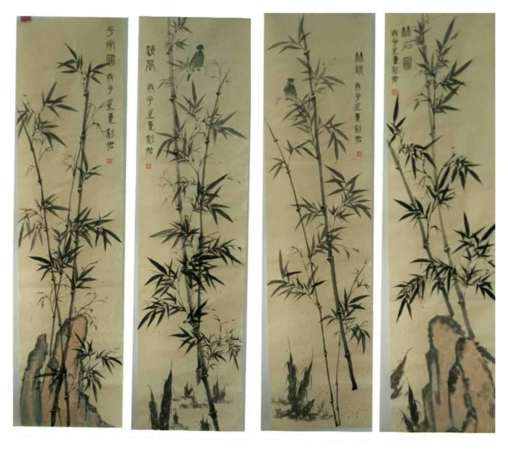 艺术家自销 范彩君 山东德州美协会员,墨竹四条屏,洒金生宣纸