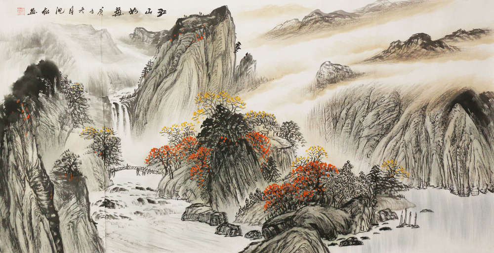 画家长田,擅长山水,曾拜访名师,学习传统笔墨技法,刻苦学习传统笔墨,水墨基础扎实,作品颇具个人风格