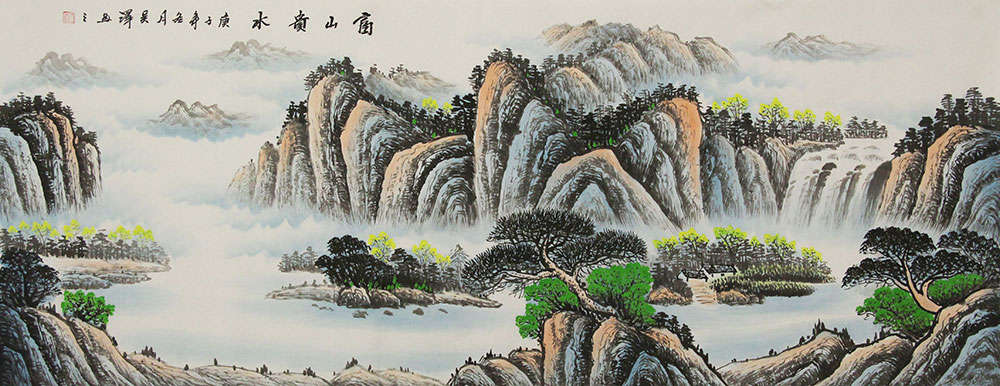 自幼喜好书画艺术,现为美术教师,作品满含鸿运当头,财运如浩浩瀑水,生生不息之意。作品整体看来远山层峦叠峰,更表达了源远流长的意境。