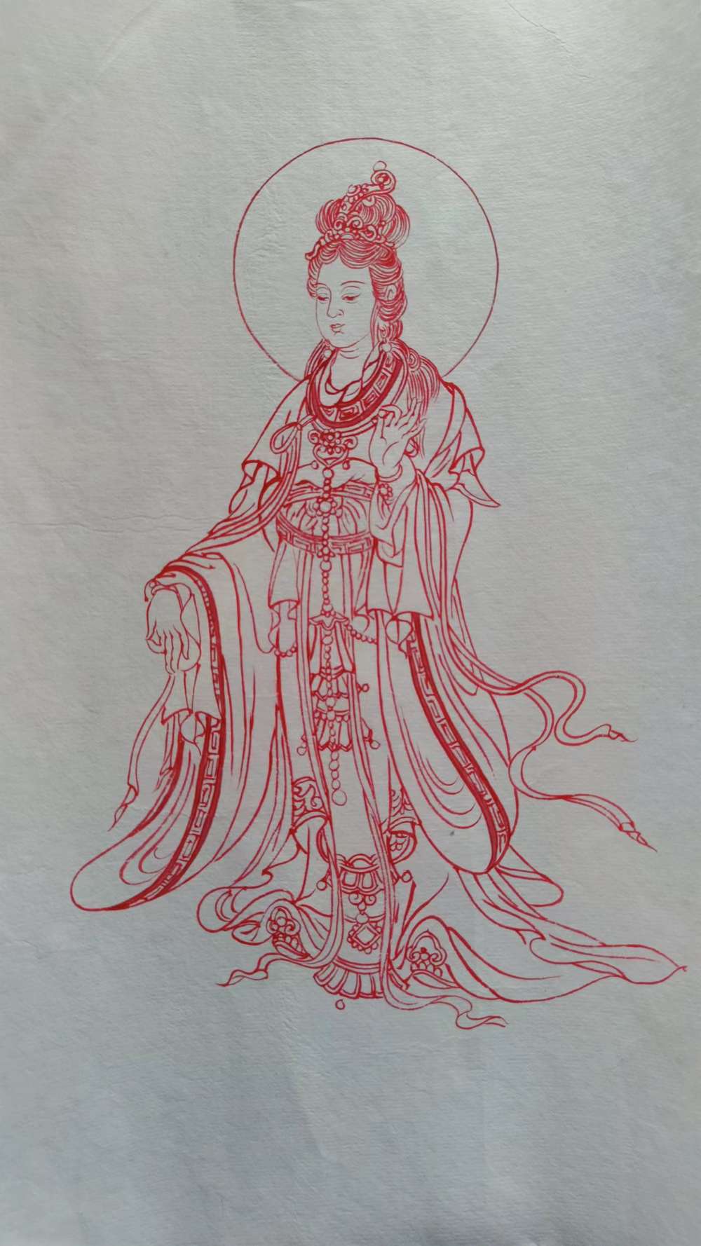吉祥观音,精选优质熟宣纸和优质朱砂绘制,镇定安神,佛保平安