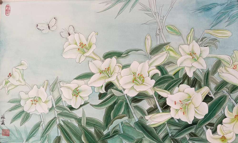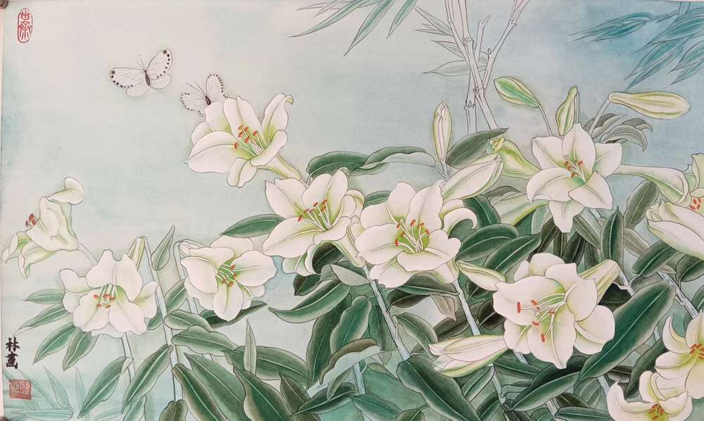 艺术家自销 砚沐 白百合湖北美术学院艺术硕士李林国画作品