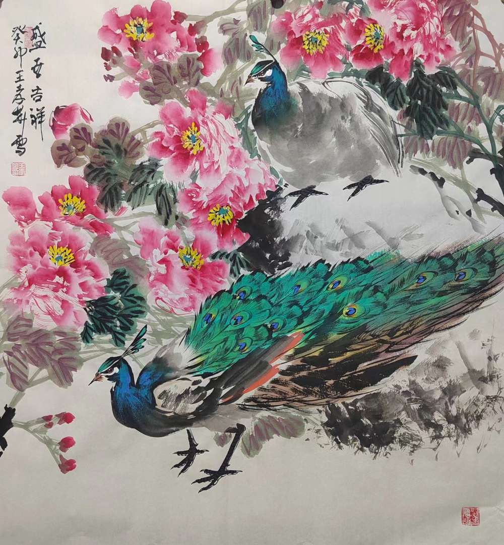 六尺斗方孔雀