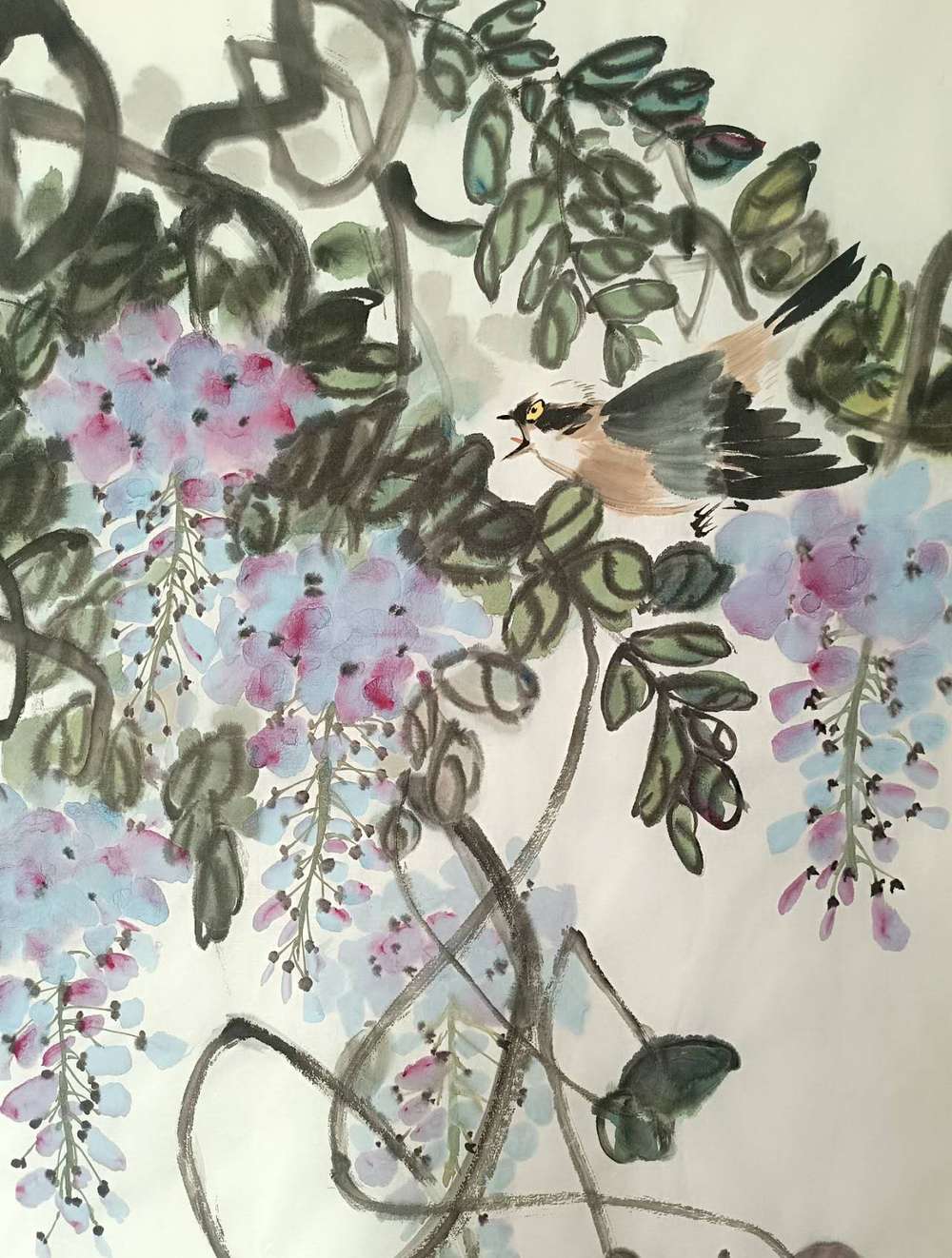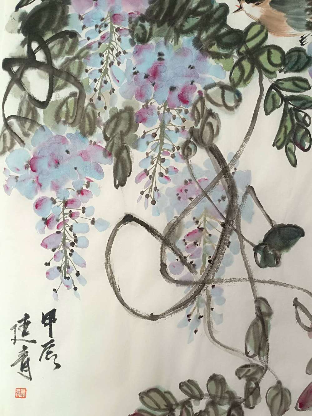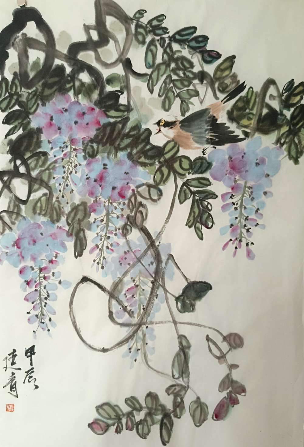 艺术家自销 湖北美院国画系 教师,青年潜力 张廷青 《紫藤小鸟》
