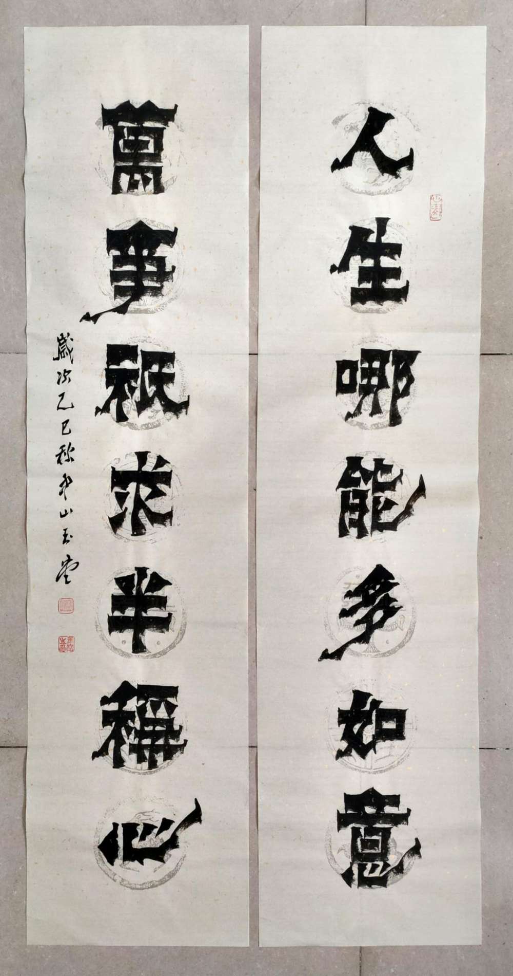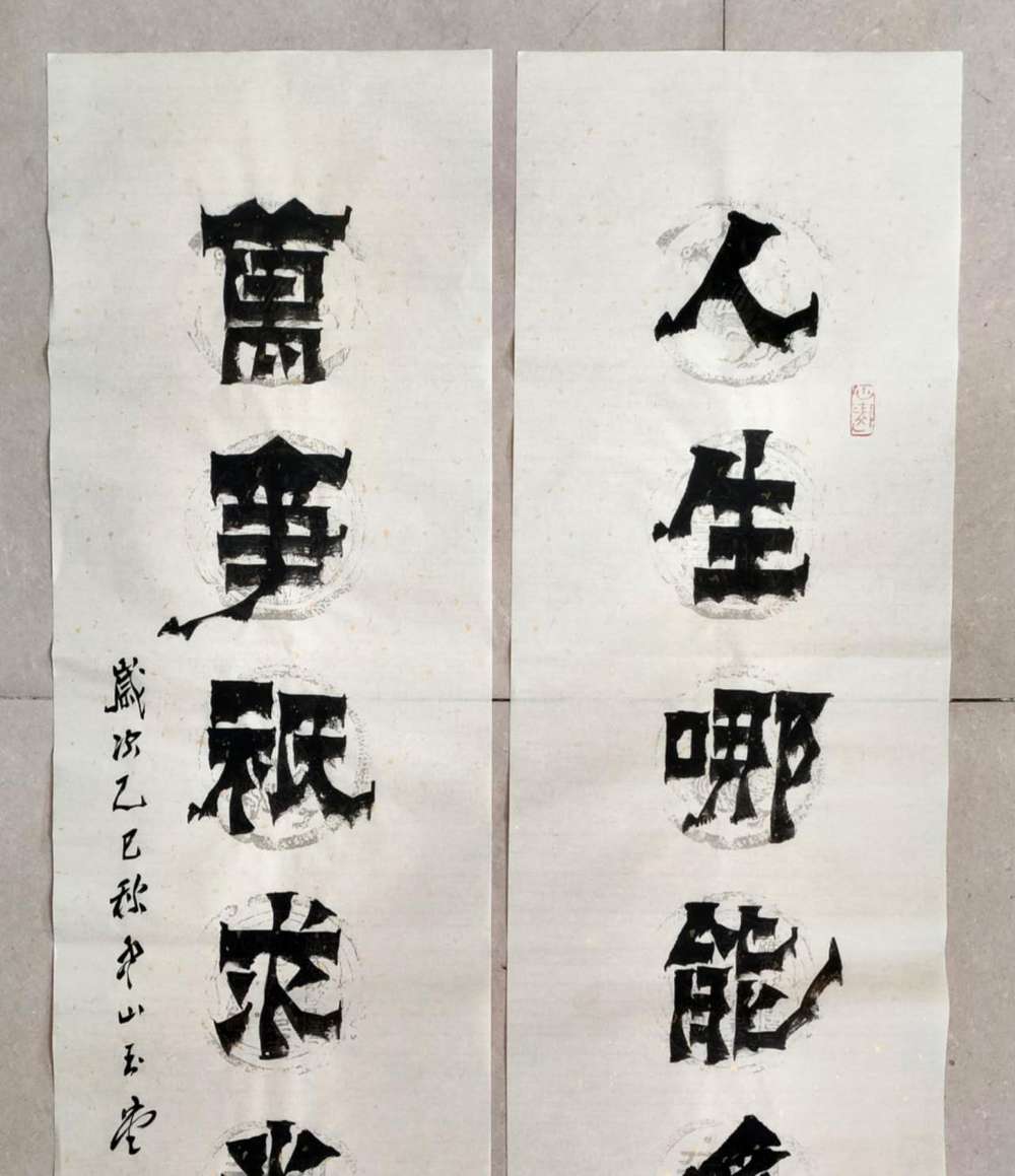 画芯尺寸:138厘米*34厘米*2,其隶书把扬州八怪金农漆书与爨宝子融合一体,用笔霸悍雄浑,用墨浓重,突破性的创新书体,行书结合汉隶写法,线条瘦硬刚劲有力,飘逸灵动,人物漫画以造型夸张有度,通过特有的作品表现形式,简练而生动 ,贴近生活,打动人心,备受市场欢迎!