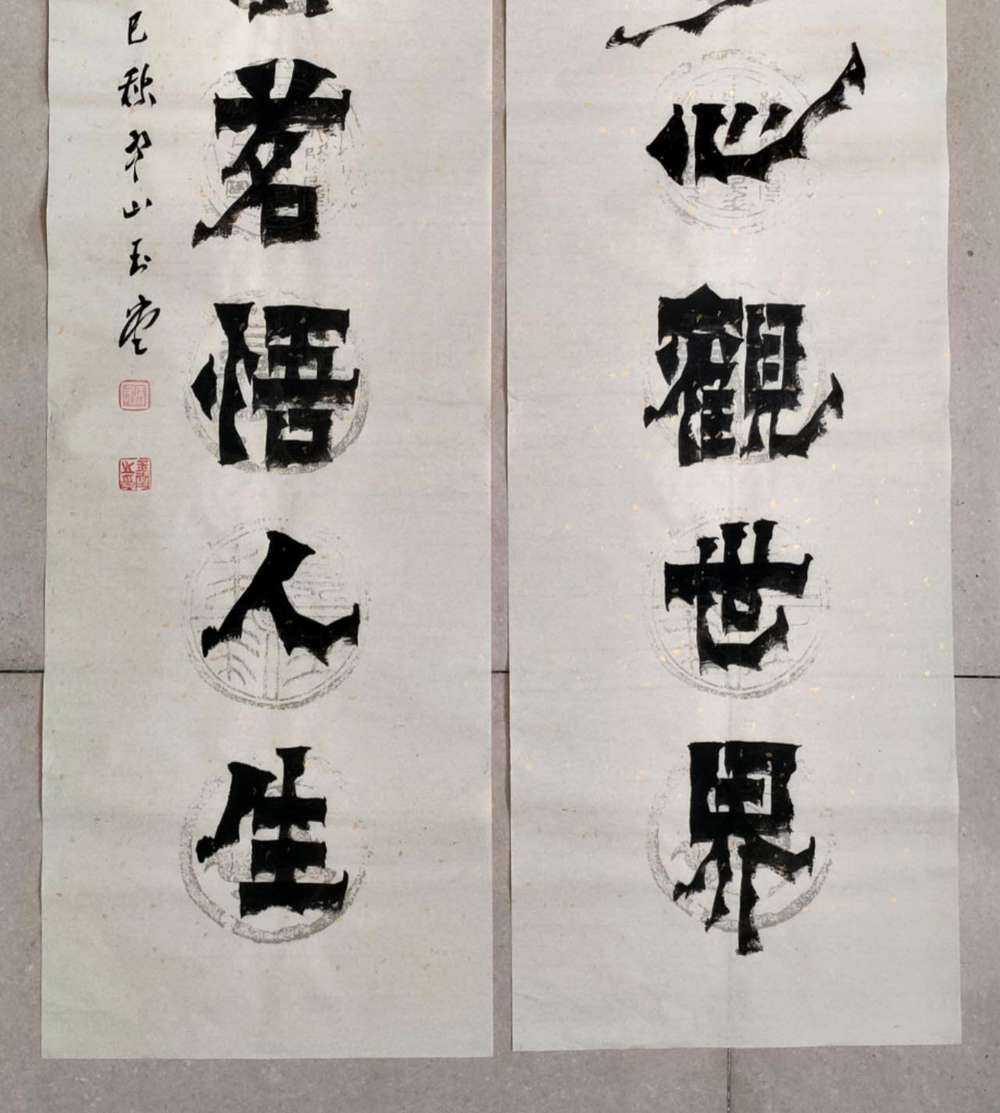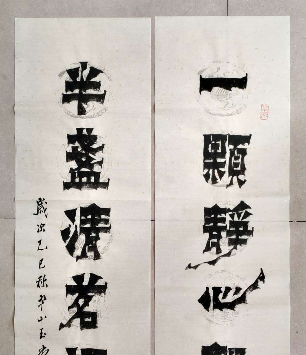 画芯尺寸:138厘米*34厘米*2,其隶书把扬州八怪金农漆书与爨宝子融合一体,用笔霸悍雄浑,用墨浓重,突破性的创新书体,行书结合汉隶写法,线条瘦硬刚劲有力,飘逸灵动,人物漫画以造型夸张有度,通过特有的作品表现形式,简练而生动 ,贴近生活,打动人心,备受市场欢迎!