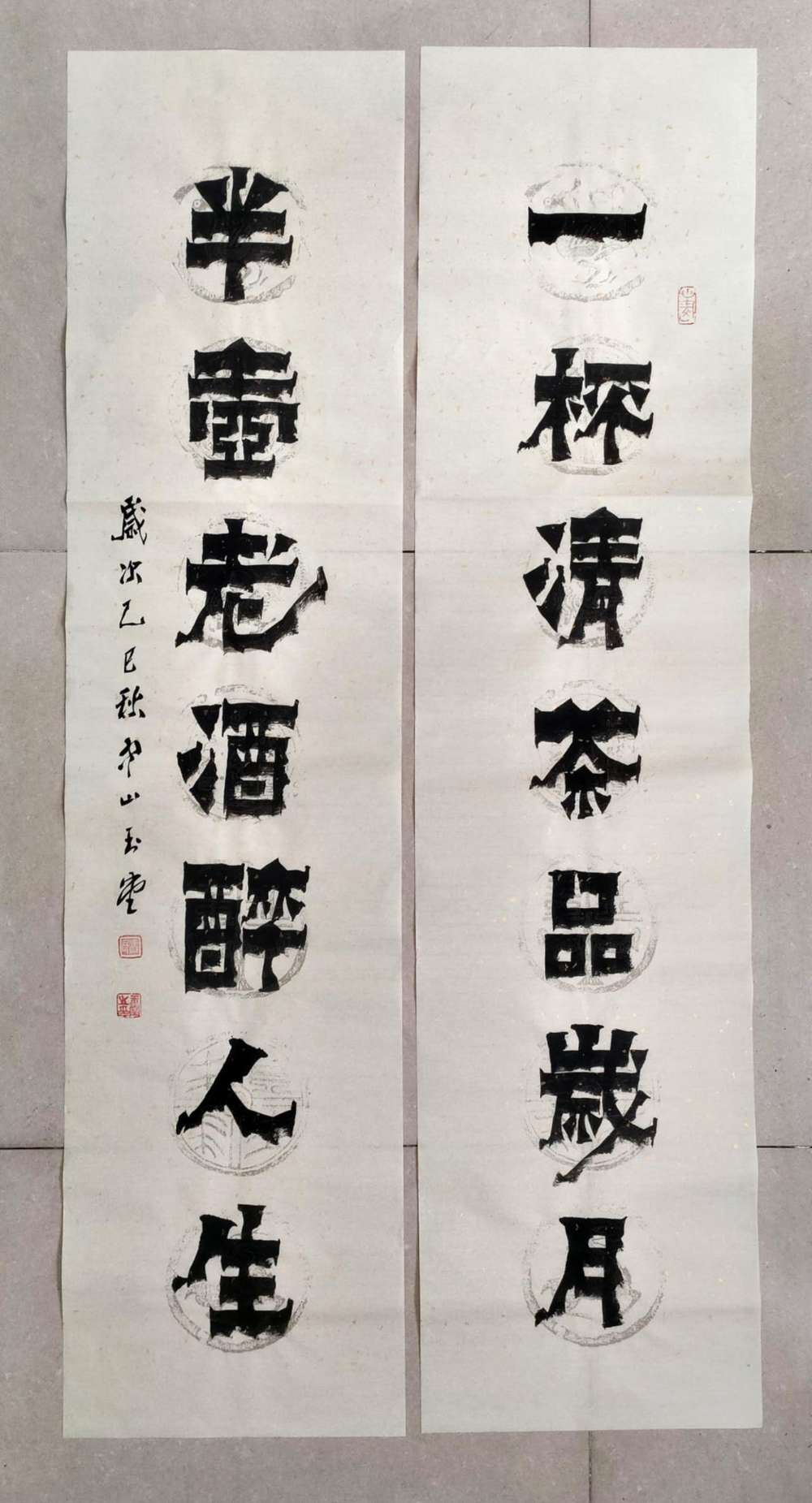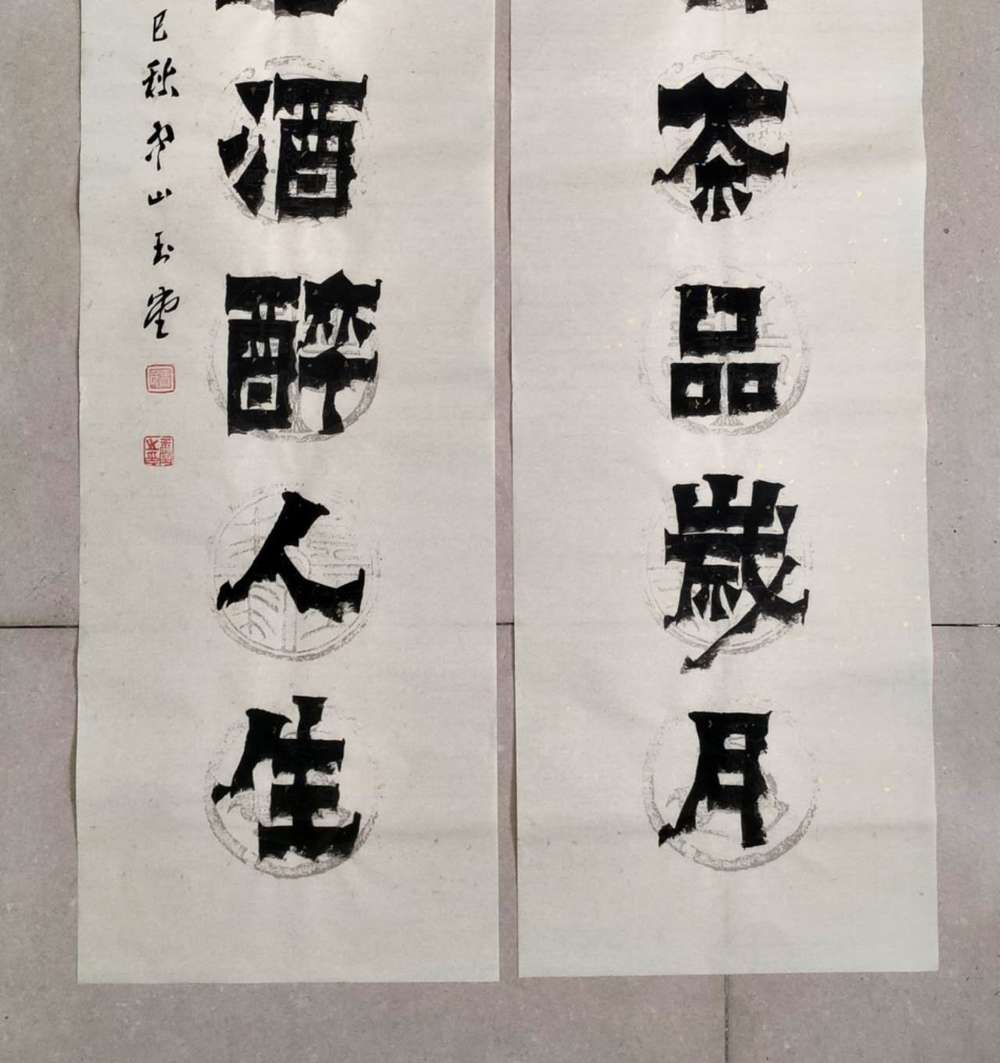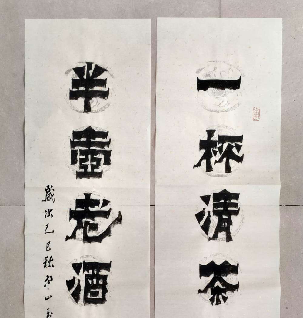 画芯尺寸:138厘米*34厘米*2,其隶书把扬州八怪金农漆书与爨宝子融合一体,用笔霸悍雄浑,用墨浓重,突破性的创新书体,行书结合汉隶写法,线条瘦硬刚劲有力,飘逸灵动,人物漫画以造型夸张有度,通过特有的作品表现形式,简练而生动 ,贴近生活,打动人心,备受市场欢迎!