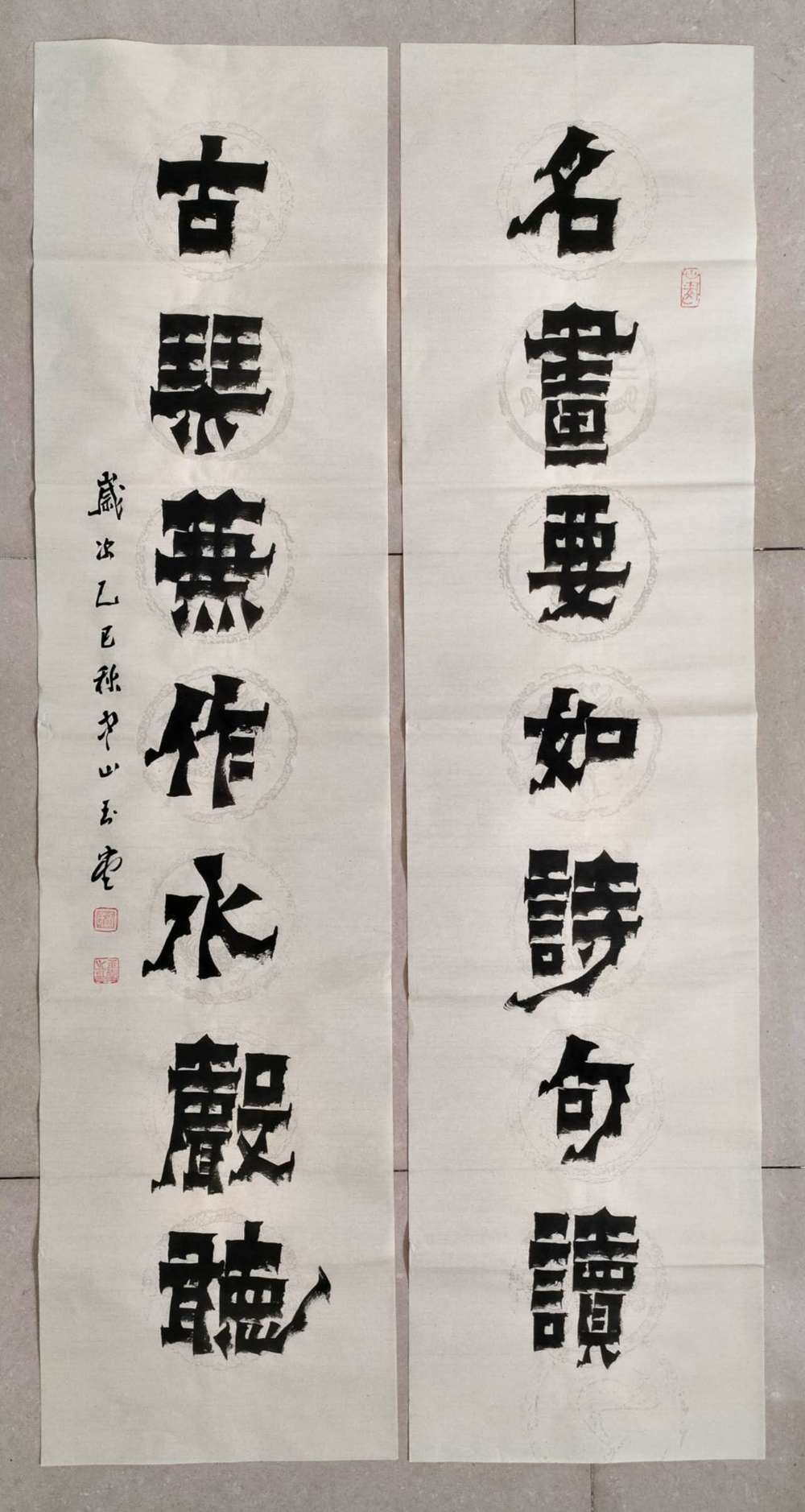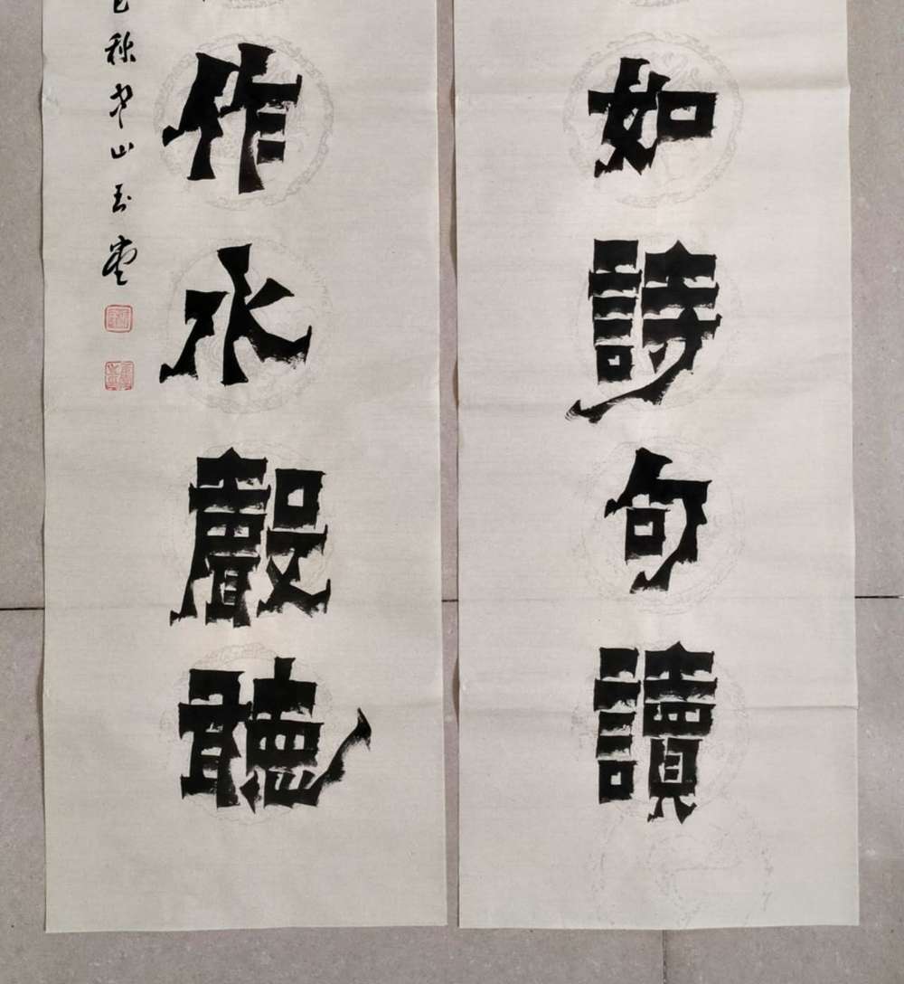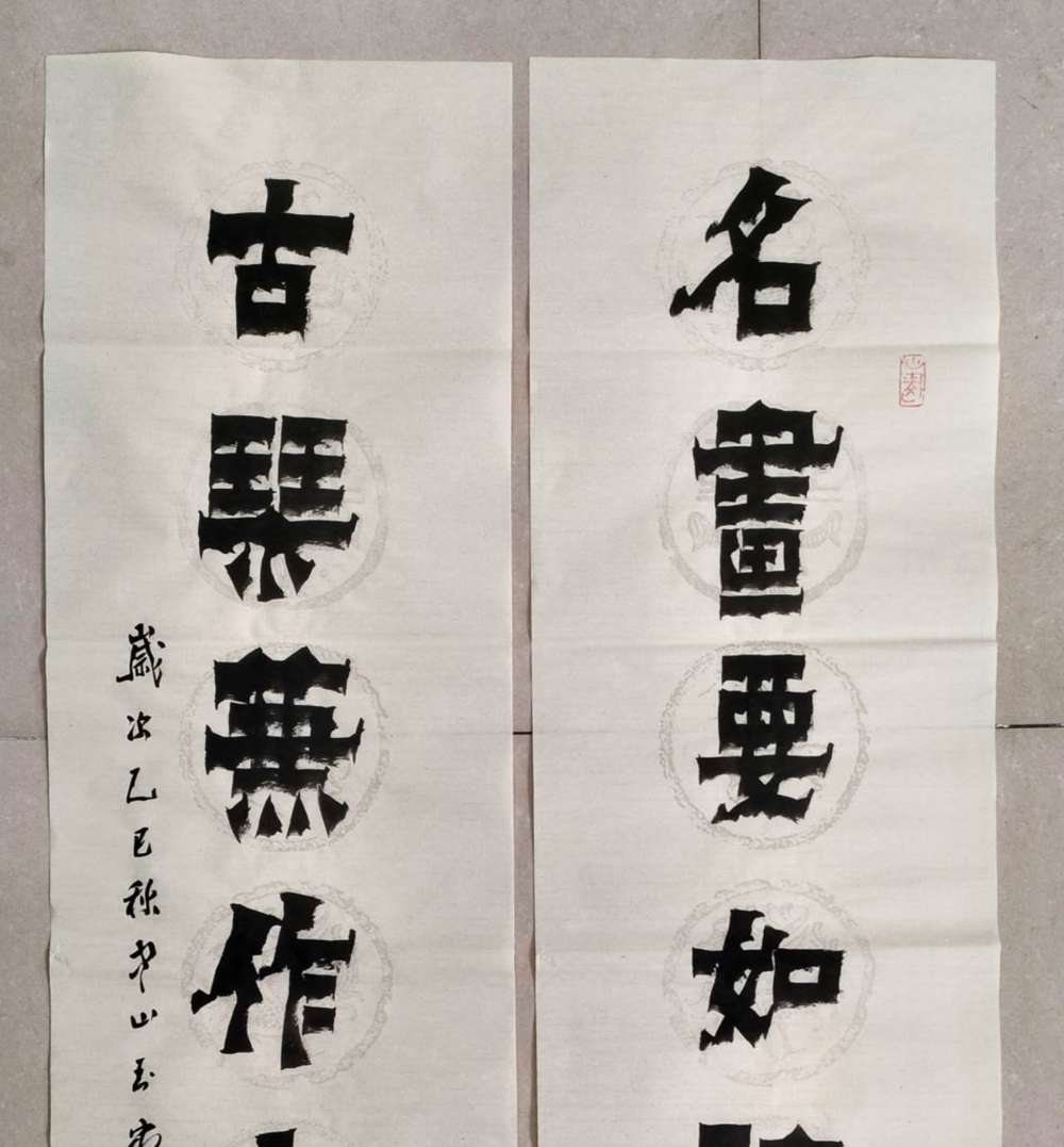 画芯尺寸:138厘米*34厘米*2,其隶书把扬州八怪金农漆书与爨宝子融合一体,用笔霸悍雄浑,用墨浓重,突破性的创新书体,行书结合汉隶写法,线条瘦硬刚劲有力,飘逸灵动,人物漫画以造型夸张有度,通过特有的作品表现形式,简练而生动 ,贴近生活,打动人心,备受市场欢迎!