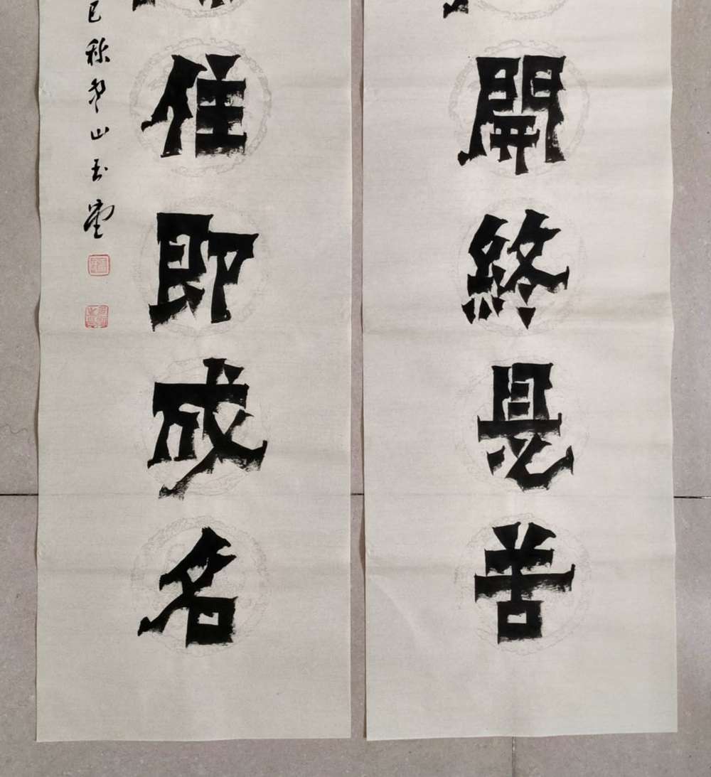 画芯尺寸:138厘米*34厘米*2,其隶书把扬州八怪金农漆书与爨宝子融合一体,用笔霸悍雄浑,用墨浓重,突破性的创新书体,行书结合汉隶写法,线条瘦硬刚劲有力,飘逸灵动,人物漫画以造型夸张有度,通过特有的作品表现形式,简练而生动 ,贴近生活,打动人心,备受市场欢迎!
