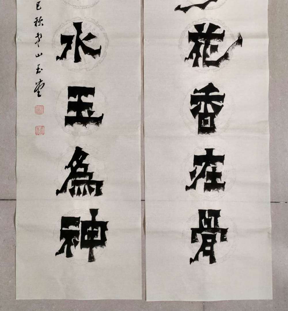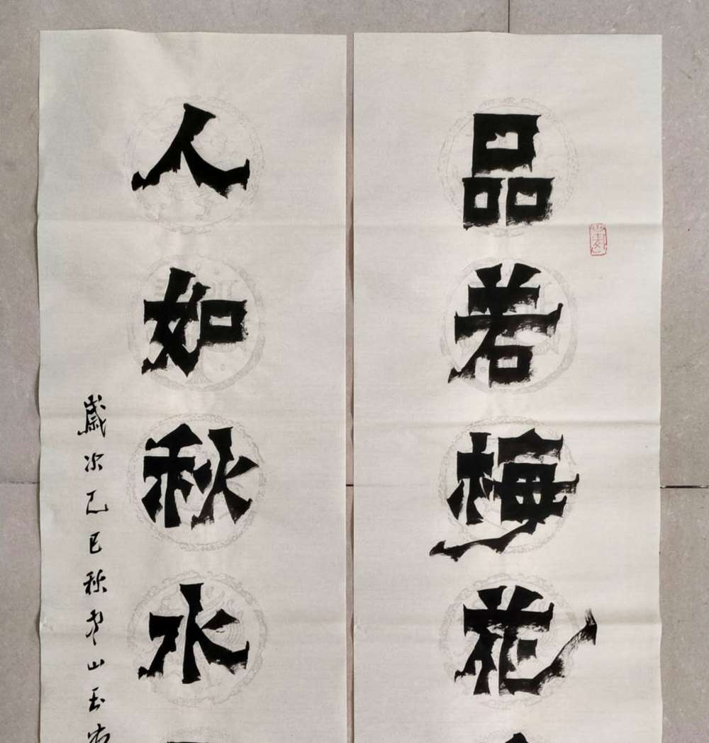 画芯尺寸:138厘米*34厘米*2,其隶书把扬州八怪金农漆书与爨宝子融合一体,用笔霸悍雄浑,用墨浓重,突破性的创新书体,行书结合汉隶写法,线条瘦硬刚劲有力,飘逸灵动,人物漫画以造型夸张有度,通过特有的作品表现形式,简练而生动 ,贴近生活,打动人心,备受市场欢迎!