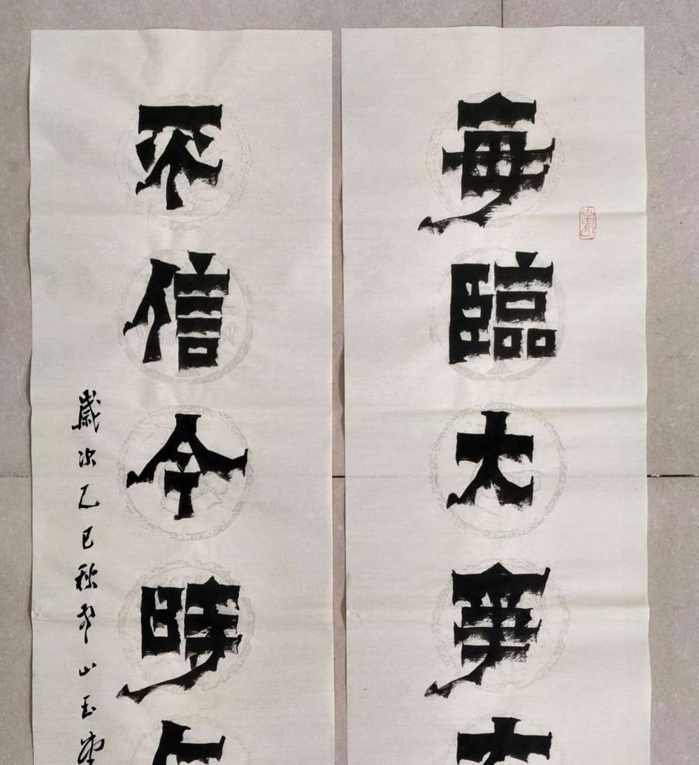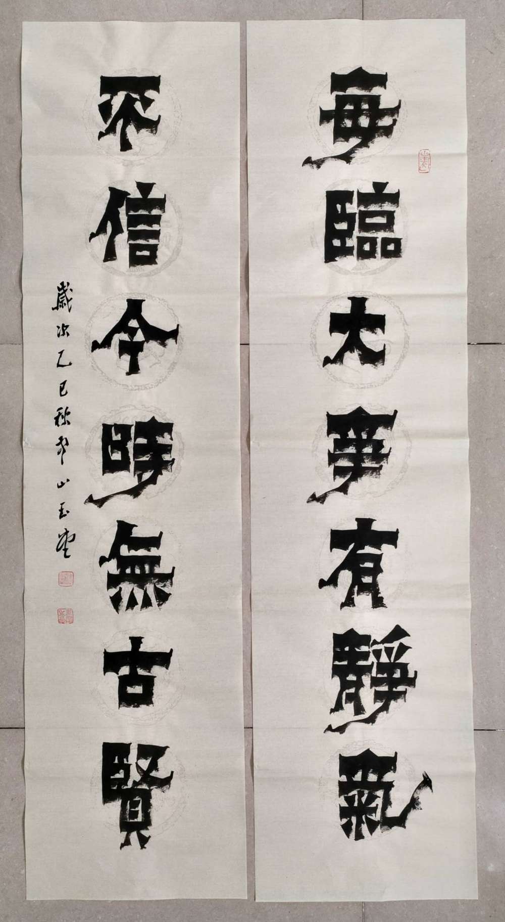 画芯尺寸:138厘米*34厘米*2,其隶书把扬州八怪金农漆书与爨宝子融合一体,用笔霸悍雄浑,用墨浓重,突破性的创新书体,行书结合汉隶写法,线条瘦硬刚劲有力,飘逸灵动,人物漫画以造型夸张有度,通过特有的作品表现形式,简练而生动 ,贴近生活,打动人心,备受市场欢迎!
