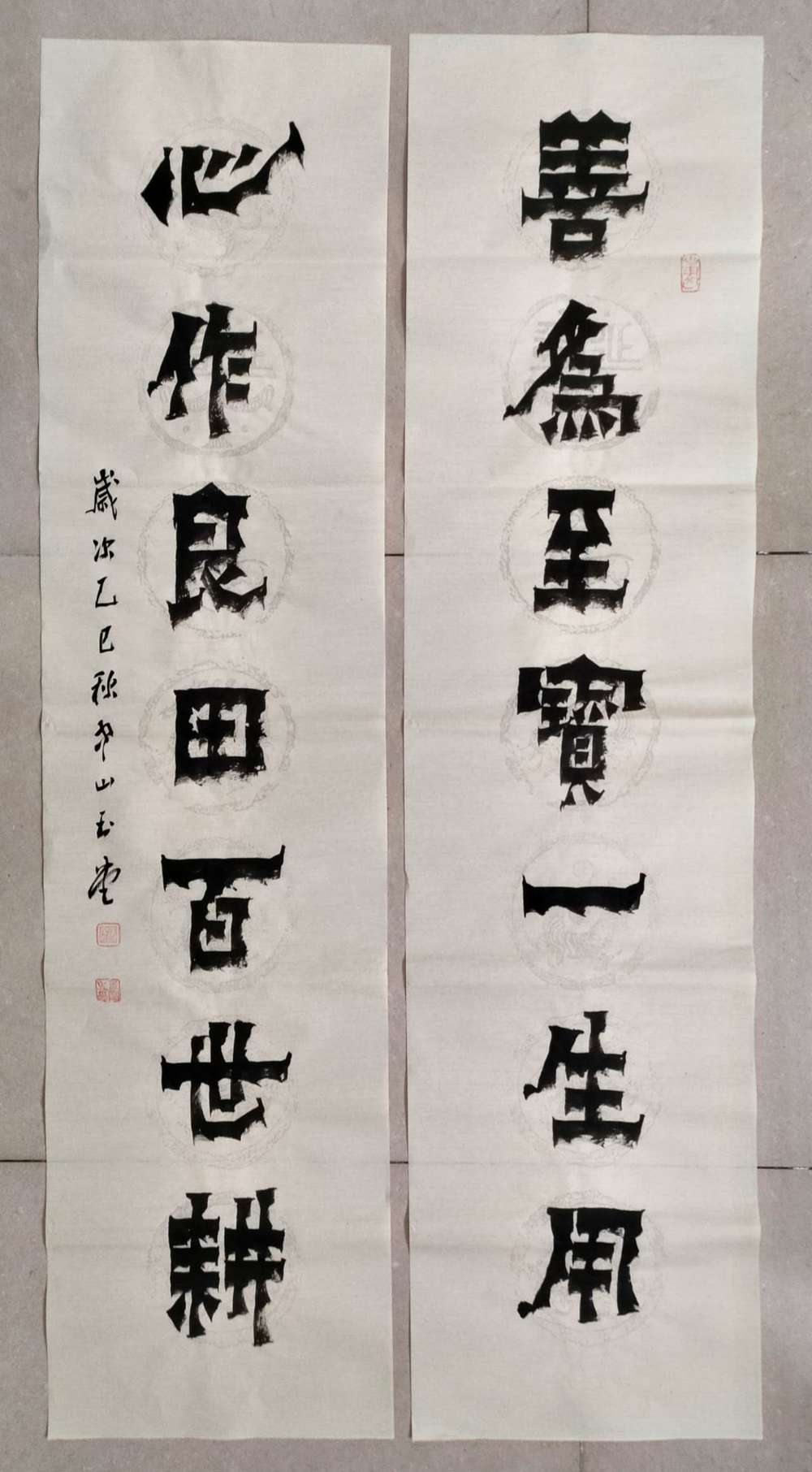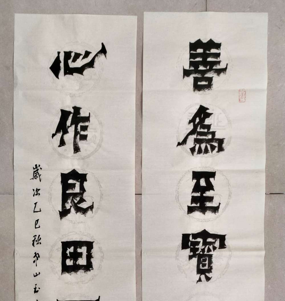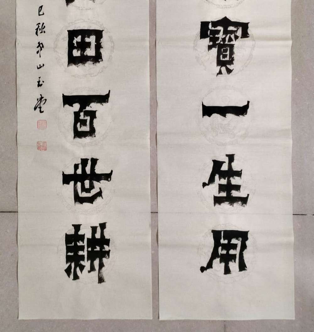 画芯尺寸:138厘米*34厘米*2,其隶书把扬州八怪金农漆书与爨宝子融合一体,用笔霸悍雄浑,用墨浓重,突破性的创新书体,行书结合汉隶写法,线条瘦硬刚劲有力,飘逸灵动,人物漫画以造型夸张有度,通过特有的作品表现形式,简练而生动 ,贴近生活,打动人心,备受市场欢迎!