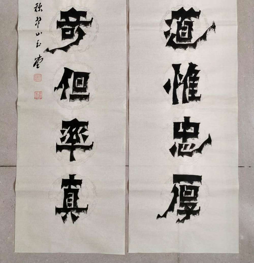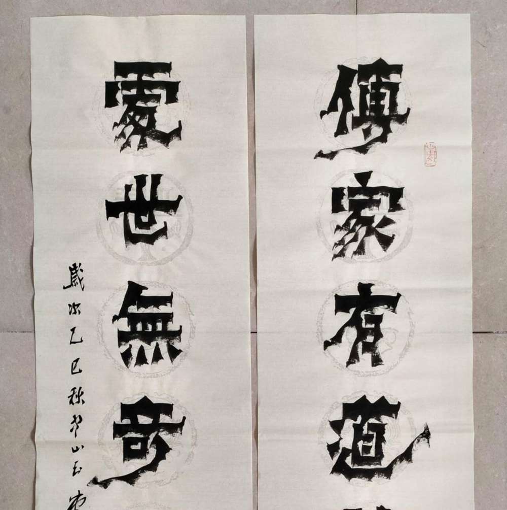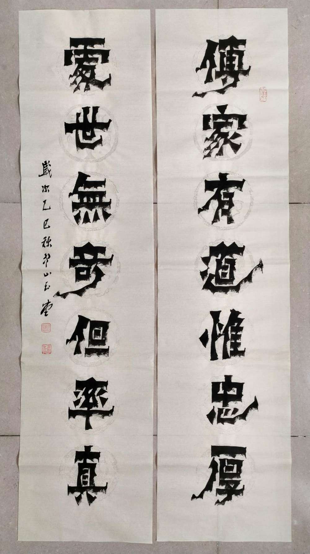 画芯尺寸:138厘米*34厘米*2,其隶书把扬州八怪金农漆书与爨宝子融合一体,用笔霸悍雄浑,用墨浓重,突破性的创新书体,行书结合汉隶写法,线条瘦硬刚劲有力,飘逸灵动,人物漫画以造型夸张有度,通过特有的作品表现形式,简练而生动 ,贴近生活,打动人心,备受市场欢迎!