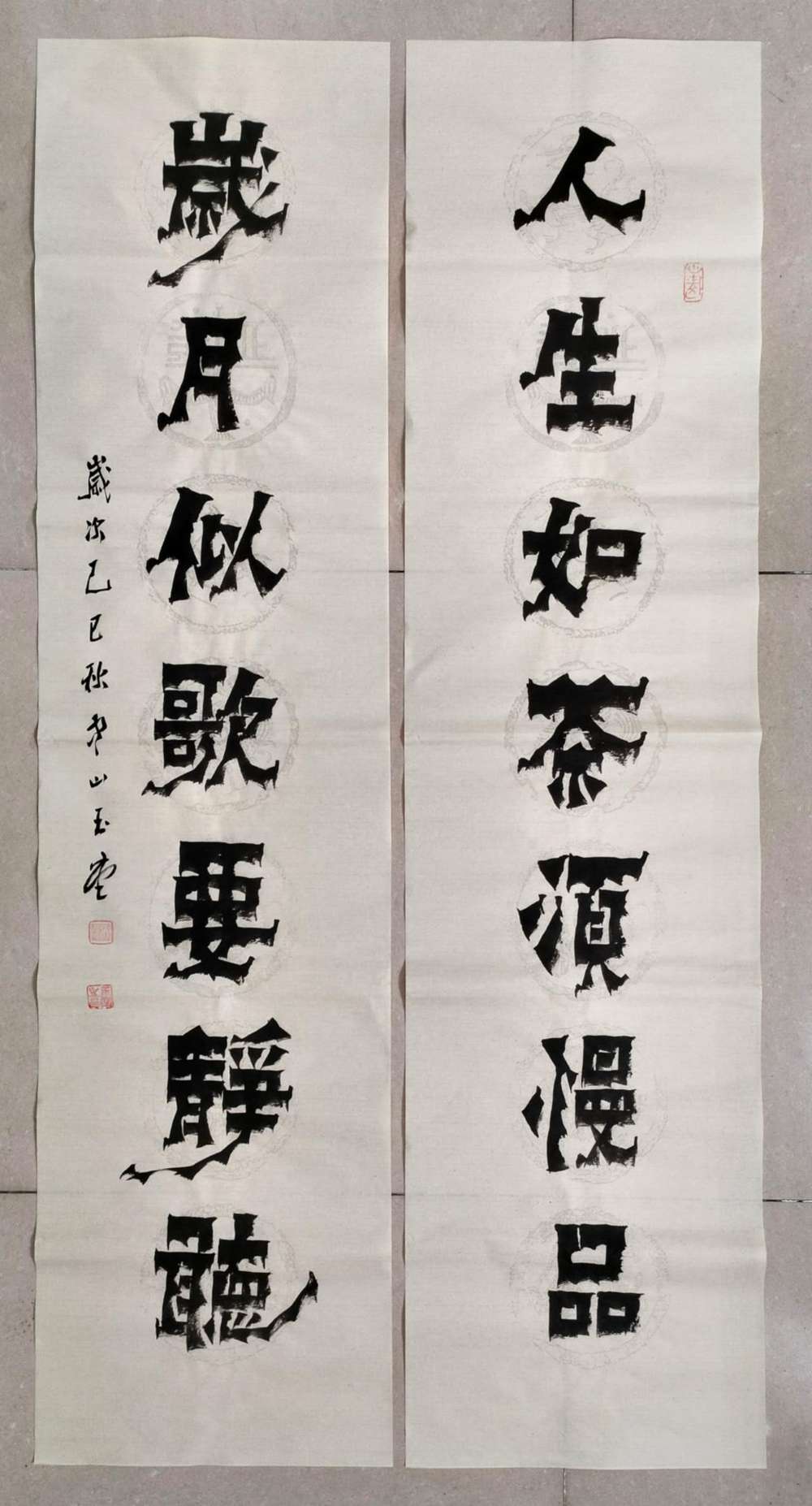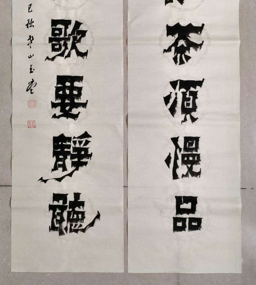 画芯尺寸:138厘米*34厘米*2,其隶书把扬州八怪金农漆书与爨宝子融合一体,用笔霸悍雄浑,用墨浓重,突破性的创新书体,行书结合汉隶写法,线条瘦硬刚劲有力,飘逸灵动,人物漫画以造型夸张有度,通过特有的作品表现形式,简练而生动 ,贴近生活,打动人心,备受市场欢迎!