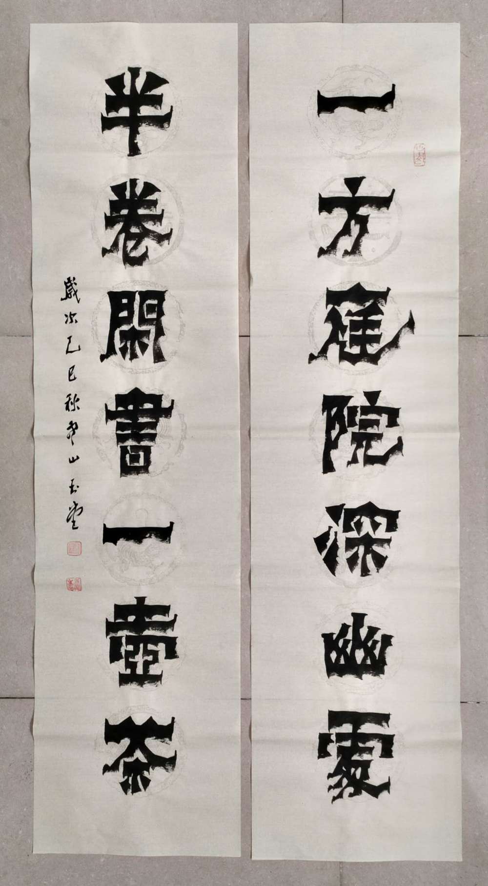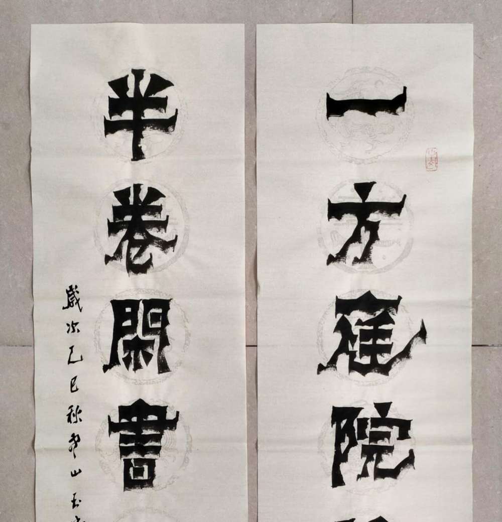 画芯尺寸:138厘米*34厘米*2,其隶书把扬州八怪金农漆书与爨宝子融合一体,用笔霸悍雄浑,用墨浓重,突破性的创新书体,行书结合汉隶写法,线条瘦硬刚劲有力,飘逸灵动,人物漫画以造型夸张有度,通过特有的作品表现形式,简练而生动 ,贴近生活,打动人心,备受市场欢迎!