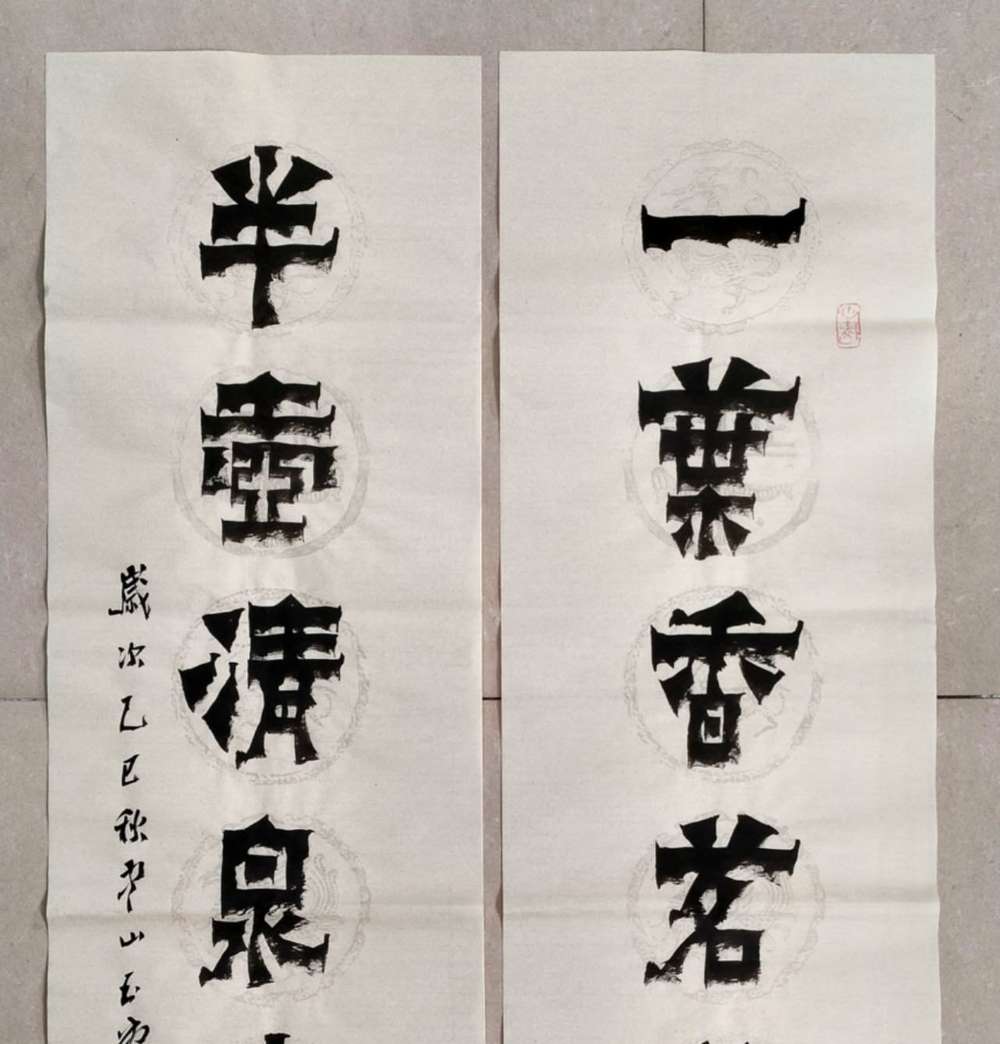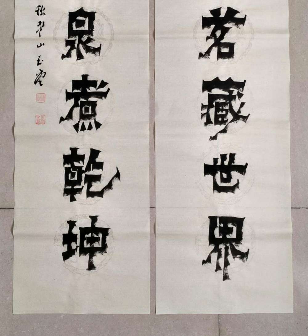 画芯尺寸:138厘米*34厘米*2,其隶书把扬州八怪金农漆书与爨宝子融合一体,用笔霸悍雄浑,用墨浓重,突破性的创新书体,行书结合汉隶写法,线条瘦硬刚劲有力,飘逸灵动,人物漫画以造型夸张有度,通过特有的作品表现形式,简练而生动 ,贴近生活,打动人心,备受市场欢迎!