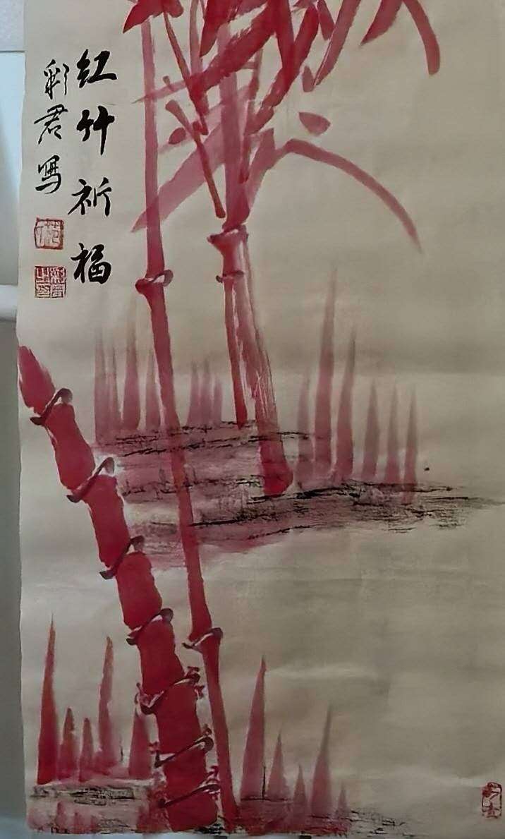 艺术家自销 范彩君 德州市美协会员,红竹祈福四条屏