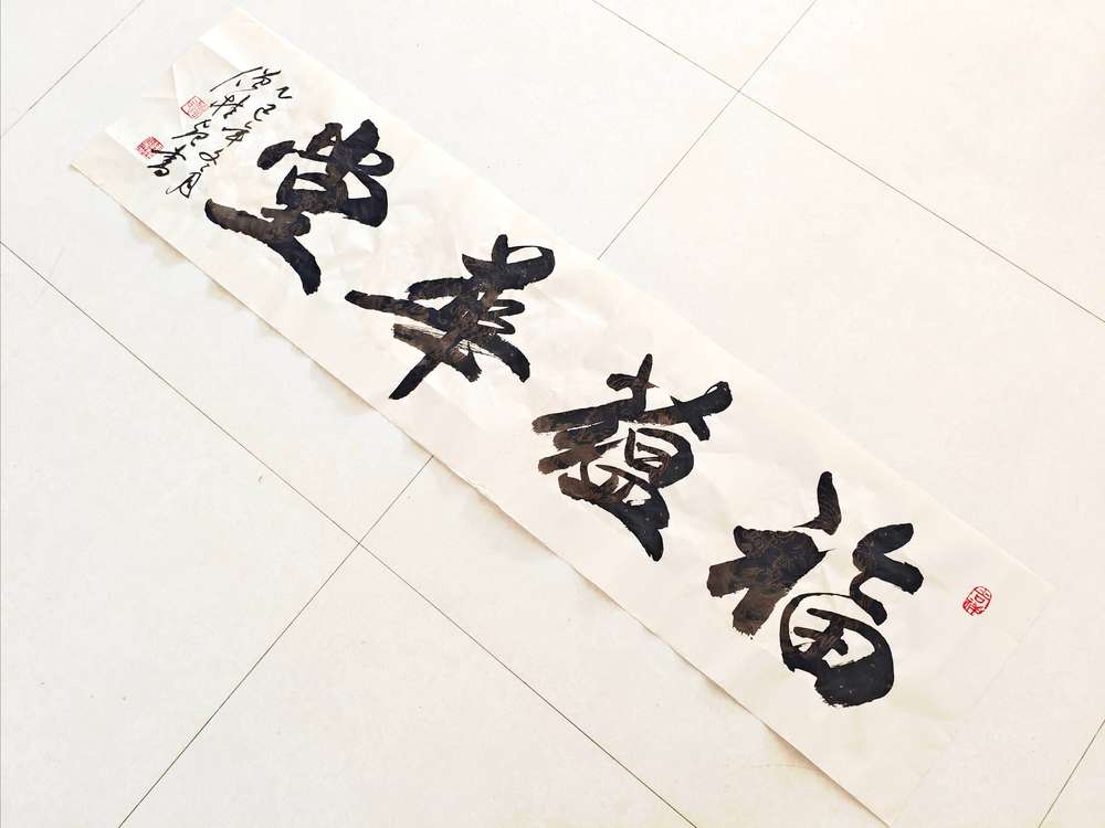 榜书作品《福蕴华堂》 f选用仿古宣纸创作,作品未装裱。