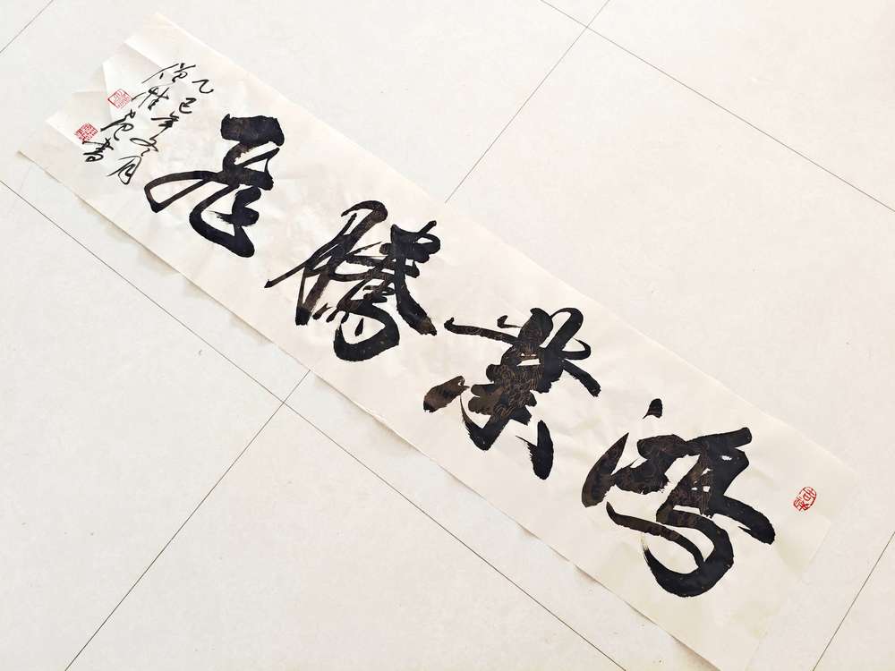 榜书作品《鸿业腾飞》 选用仿古宣纸创作,作品未装裱。