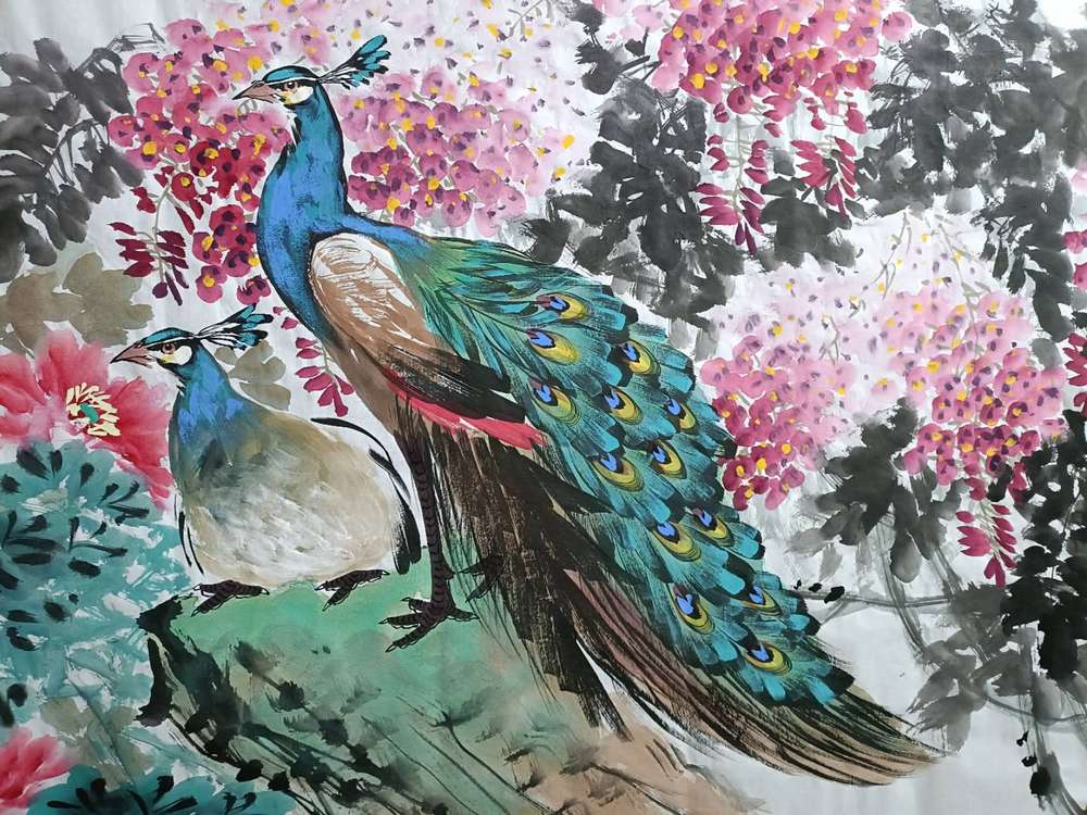 六尺整幅孔雀题材作品