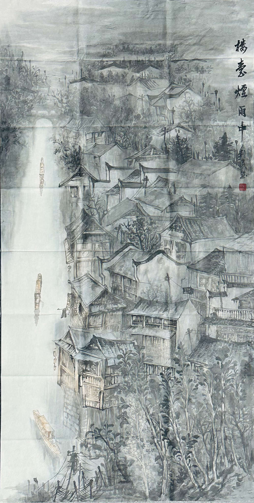 艺品万家所售作品在运输过程中会因挤压产生折痕,但并不影响作品本身,更不会造成作品价值缺失,装裱后折痕会消失。