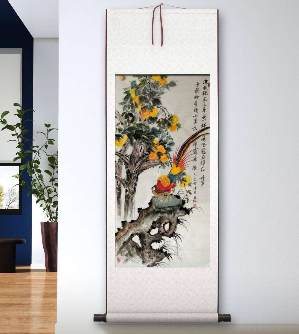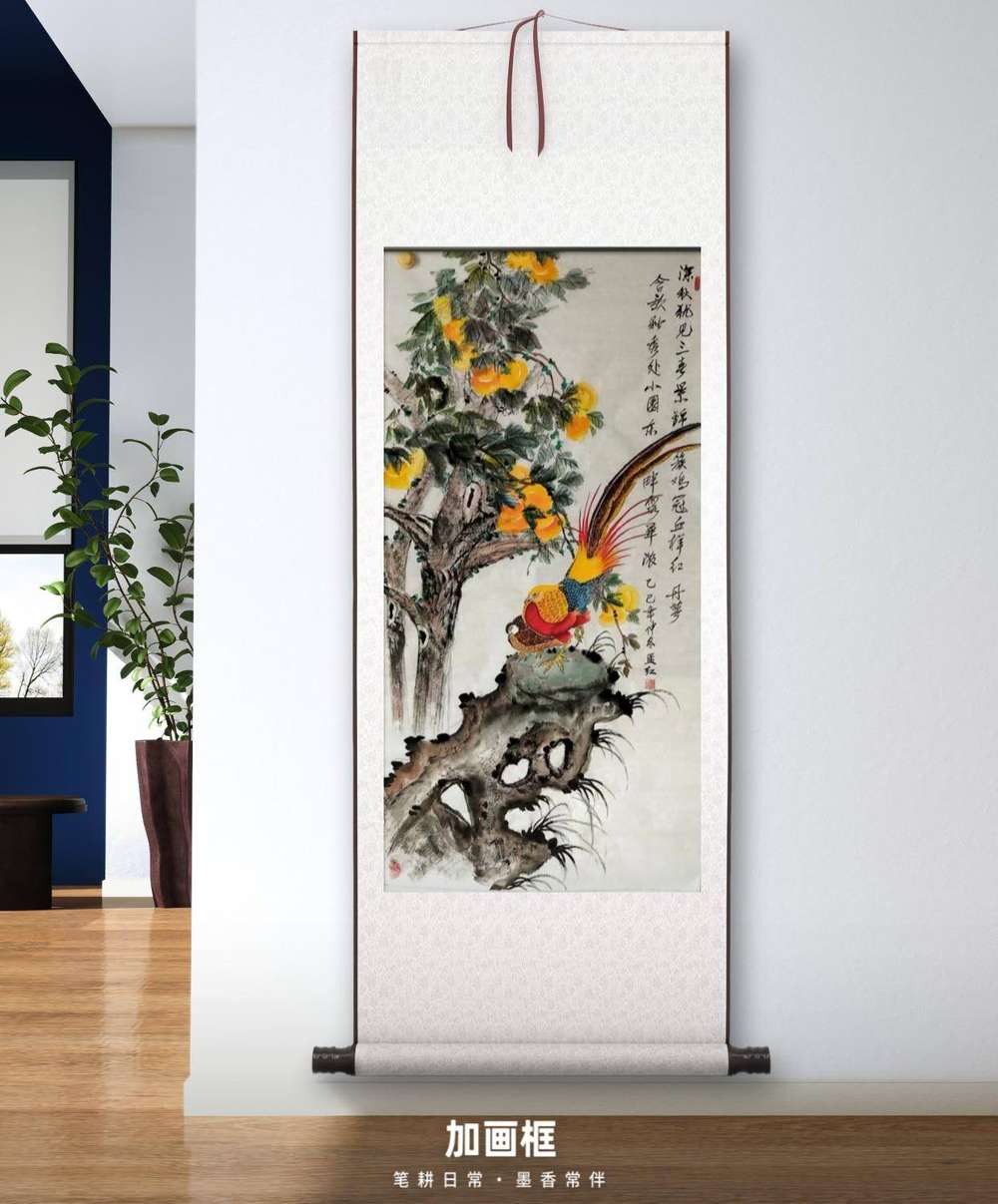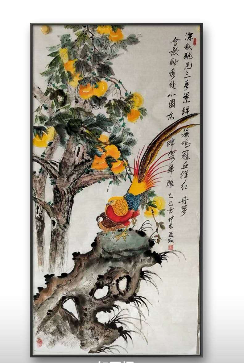 艺术家自销 梦绘 柿子+锦鸡