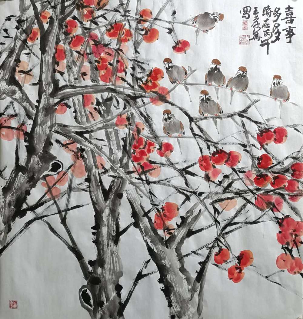 六尺斗方柿子题材作品