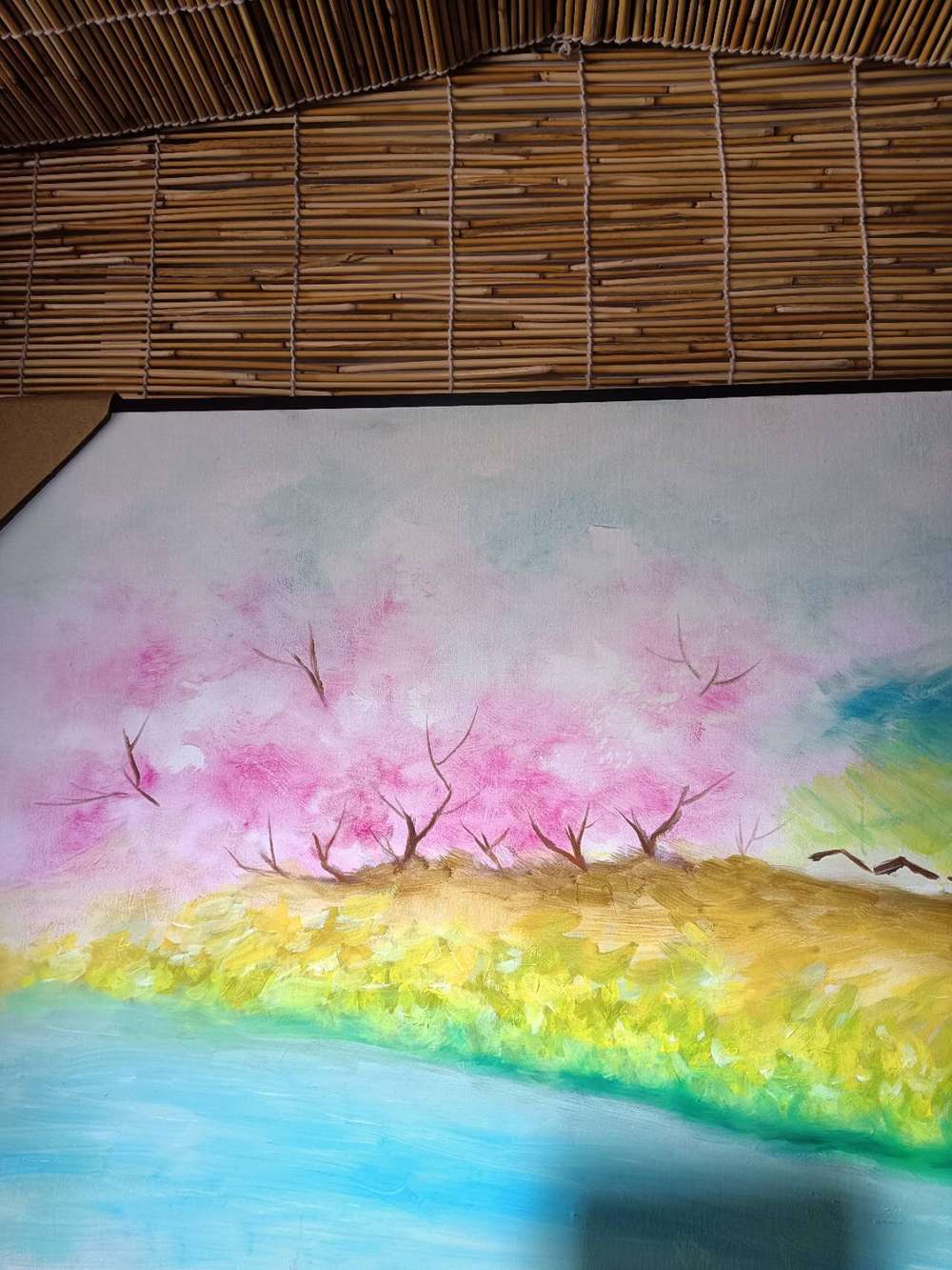 1. 文化源头:陶渊明《桃花源记》 作品灵感直接来自东晋陶渊明的经典散文《桃花源记》,以“世外桃源”为母题,描绘没有纷争、宁静祥和、自然美好的理想世界,是对中国传统文化中精神净土、理想家园的当代艺术转译。 2. 现实动因:当代人的精神需求 - 回应现代社会快节奏、高压力的生活状态,聚焦人们对宁静、放松、治愈的普遍渴望。 - 寄托对自然田园、诗意生活的向往,在城市化进程中,用艺术留住