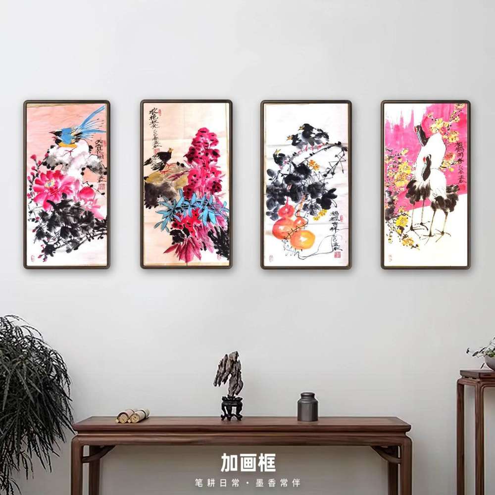 艺术家自销 梦绘 四条屏《梅鹤同春》《天香花开》《福禄吉祥》《浓艳秋光》