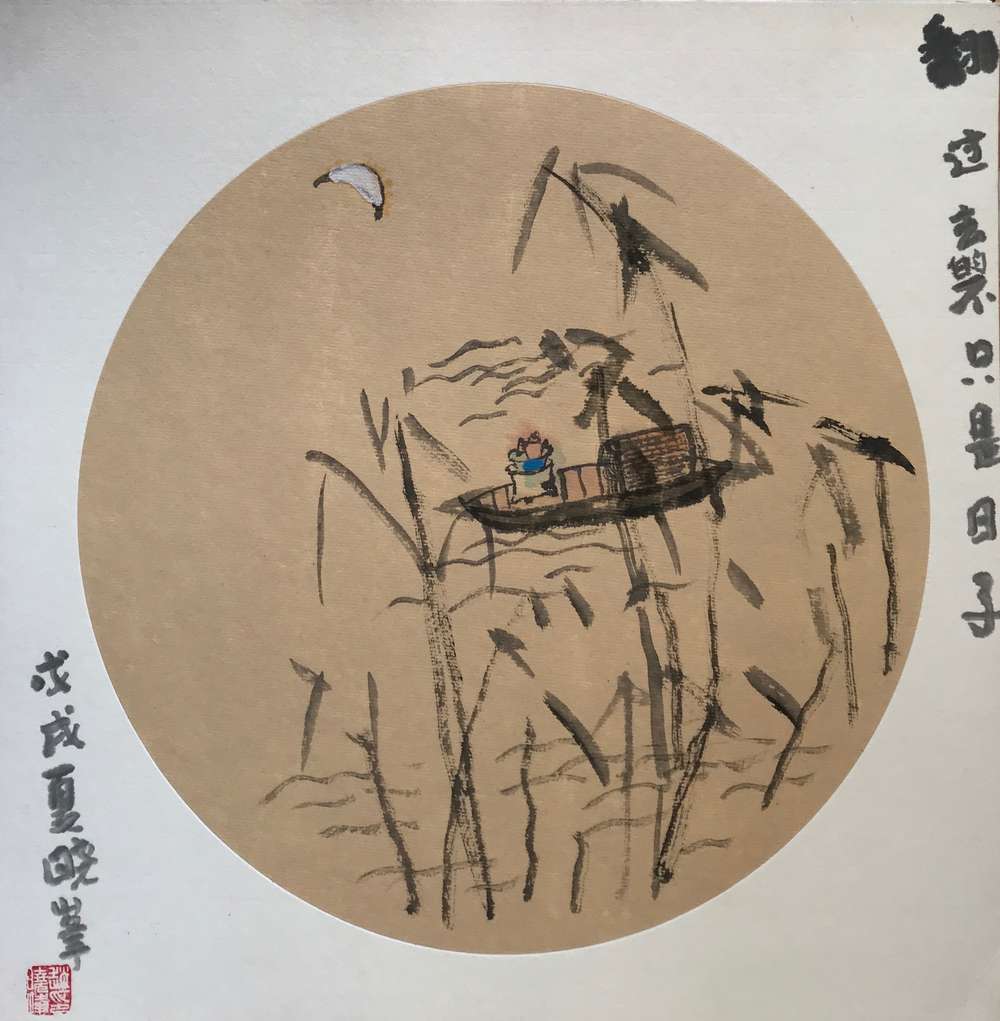 一叶小舟荡于夜月之下,一壶春茶松涛作响