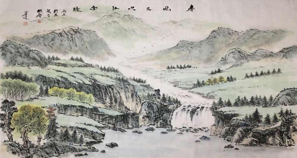 艺术家自销 郭二林 六尺国画山水《春风又吹江南绿》中国电视大学老师
