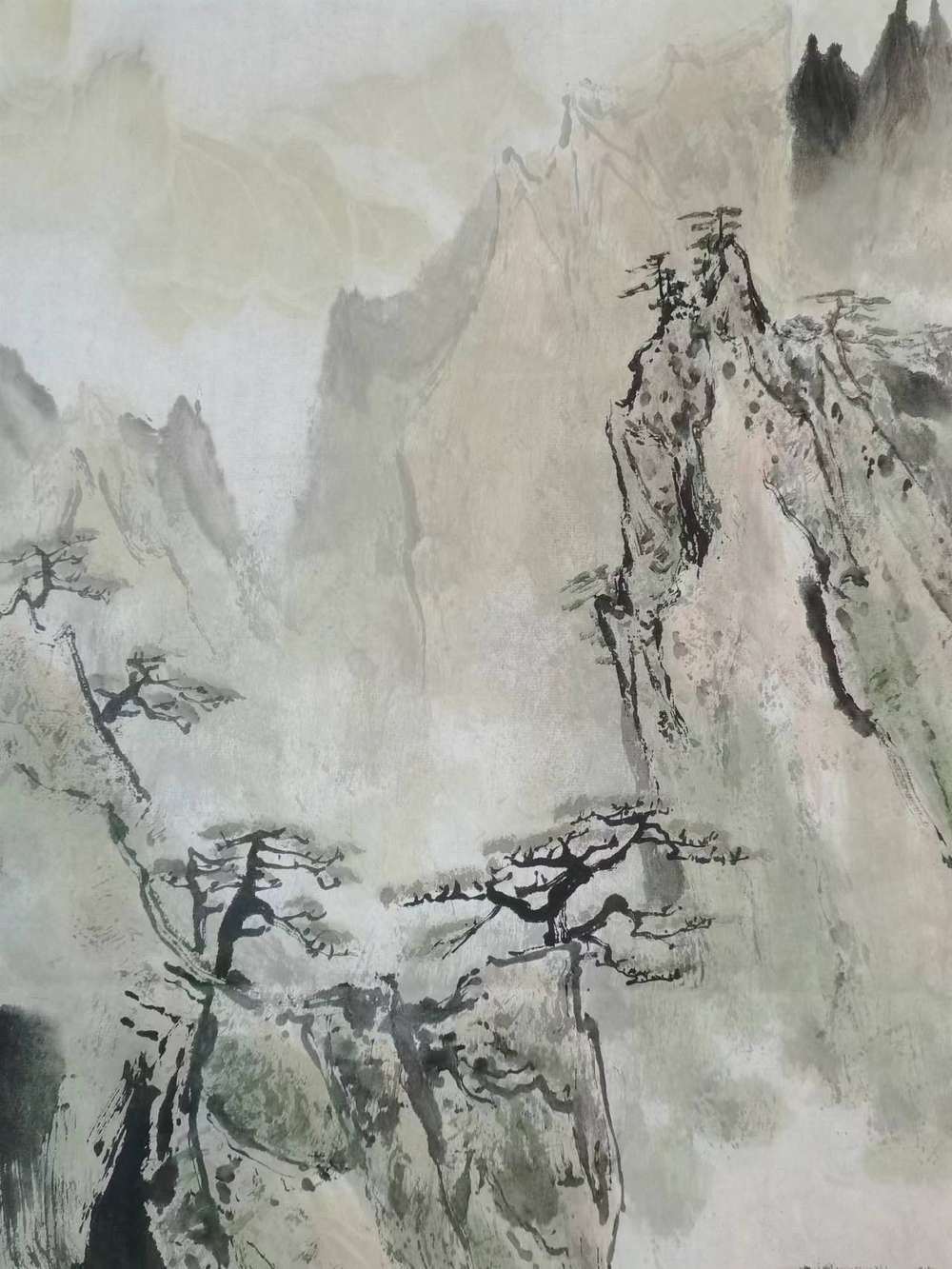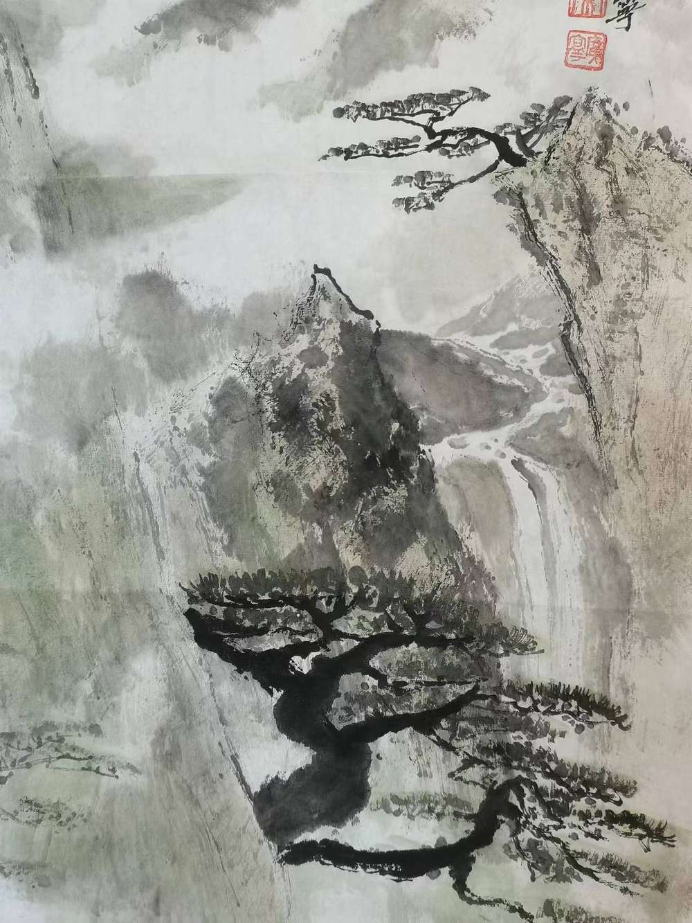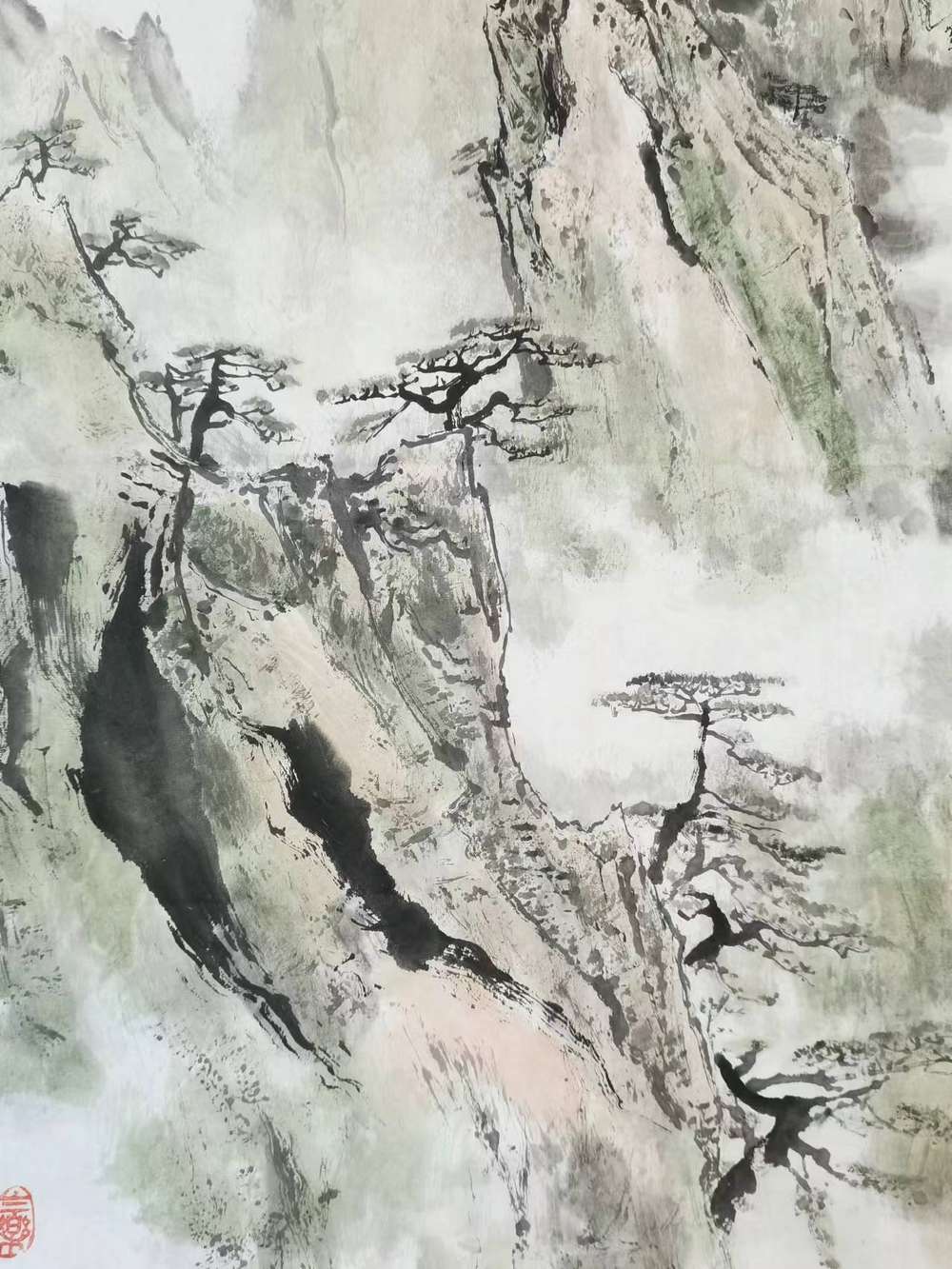 作者早年师承于李苦禅大师的得意弟子李松林老师,作品笔墨苍劲有力,构图险绝严谨,作者亲自到桂林写生体验生活数月,对漓江山水有独特的理解和表达,用沉稳老辣的笔墨画出独特的漓江山水。宣纸画心未装裱