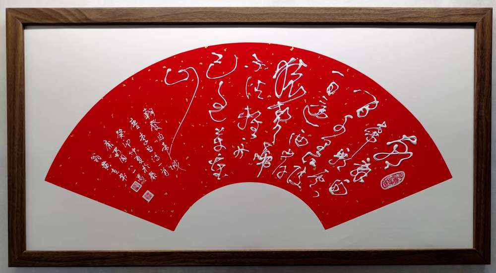 自制特殊注塑笔,书写时一气呵成,畅快流利,字字笔画凸出,胜似浮雕。美幻绝伦。己装框。