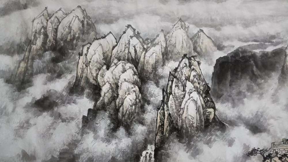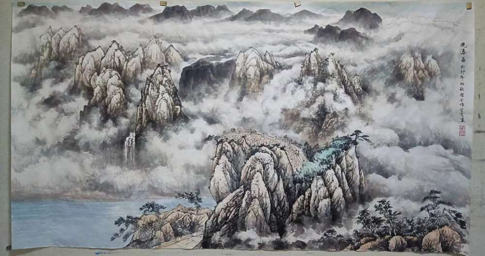 该作品为北派山水画家师恩钊先生的学生赵金恒所作,纯手绘。