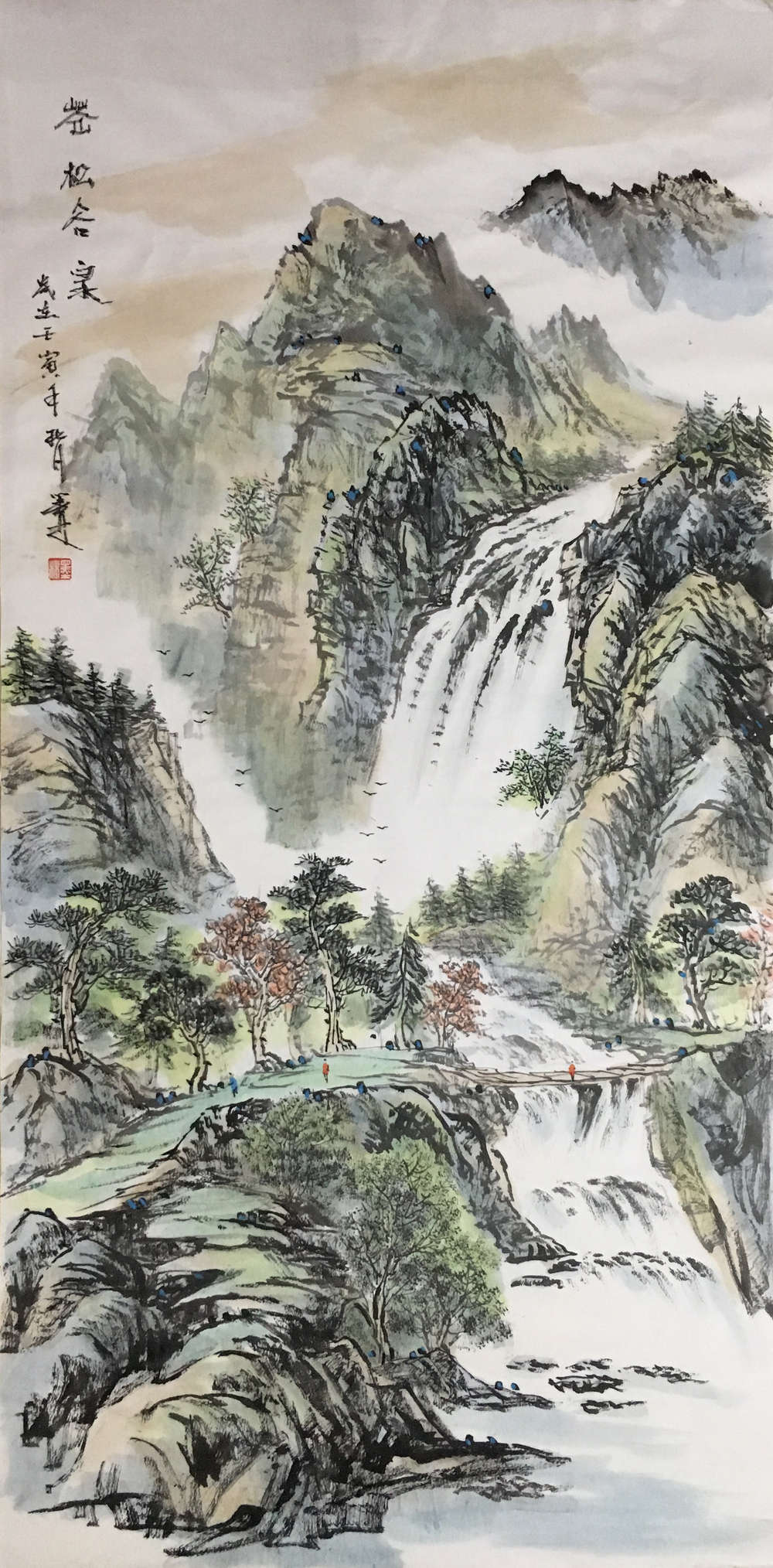 艺术家自销 郭二林 四尺竖幅 苍松谷泉 原中国电视大学老师